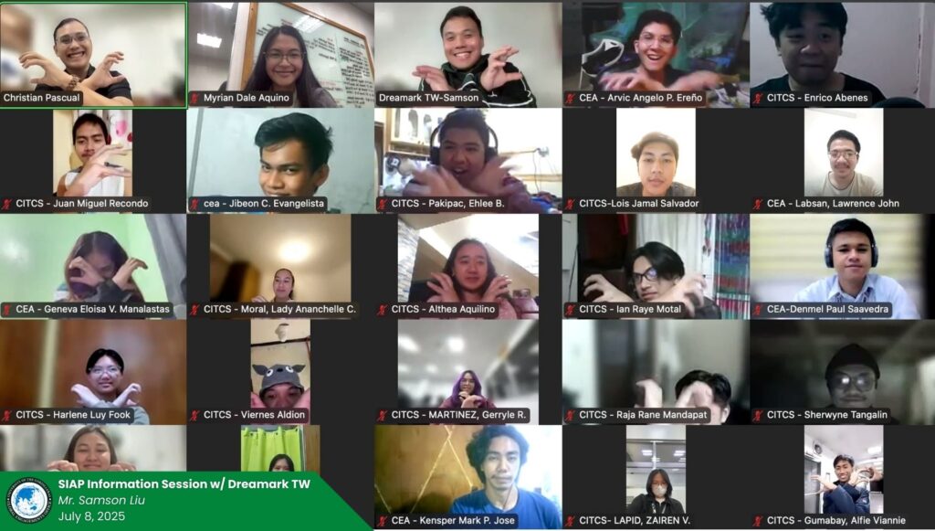 The Global Engagements Office (GEO) of the University of the Cordilleras conducted an Information Session on the Student Internship Abroad Program (SIAP) in partnership with Dreamark TW, a Taiwan-based agency specializing in international internship placements. The session was attended by around 55 graduating students from the College of Engineering and Architecture (CEA) and the College of Information Technology and Computer Science (CITCS), providing them with insights into internship opportunities in Taiwan and the benefits of gaining professional experience abroad.