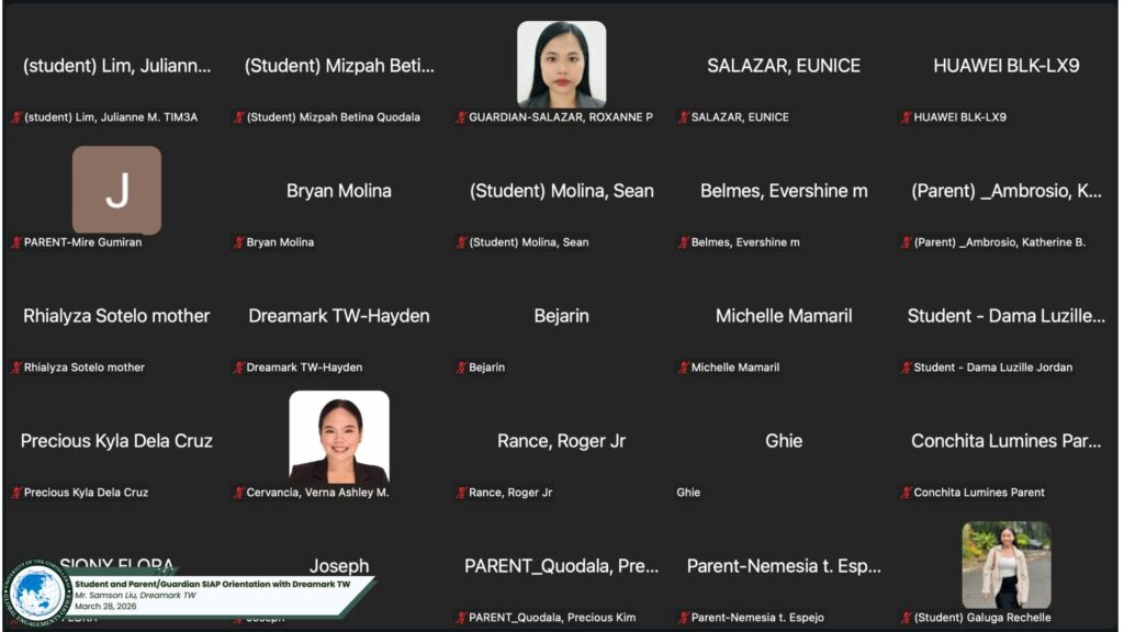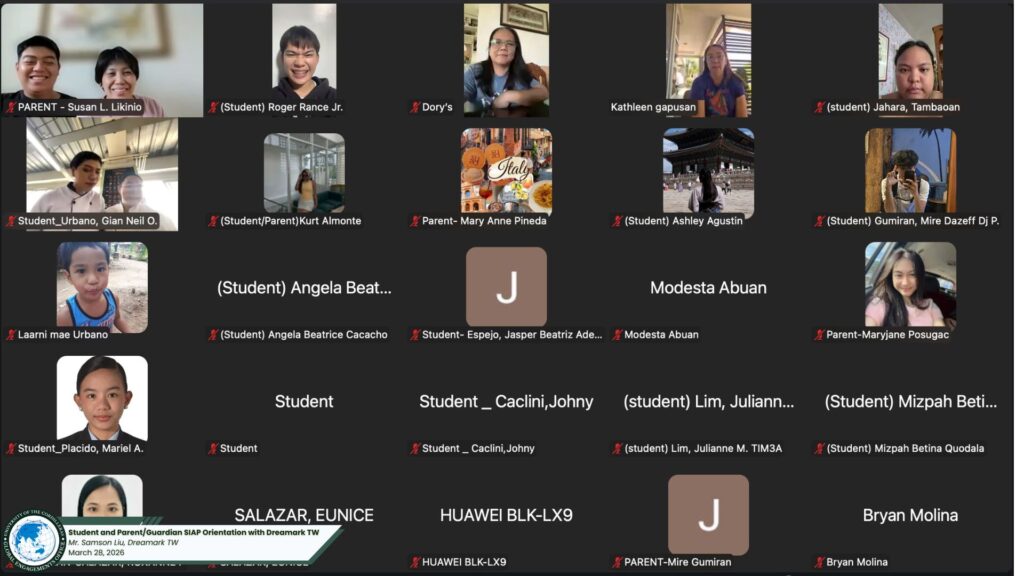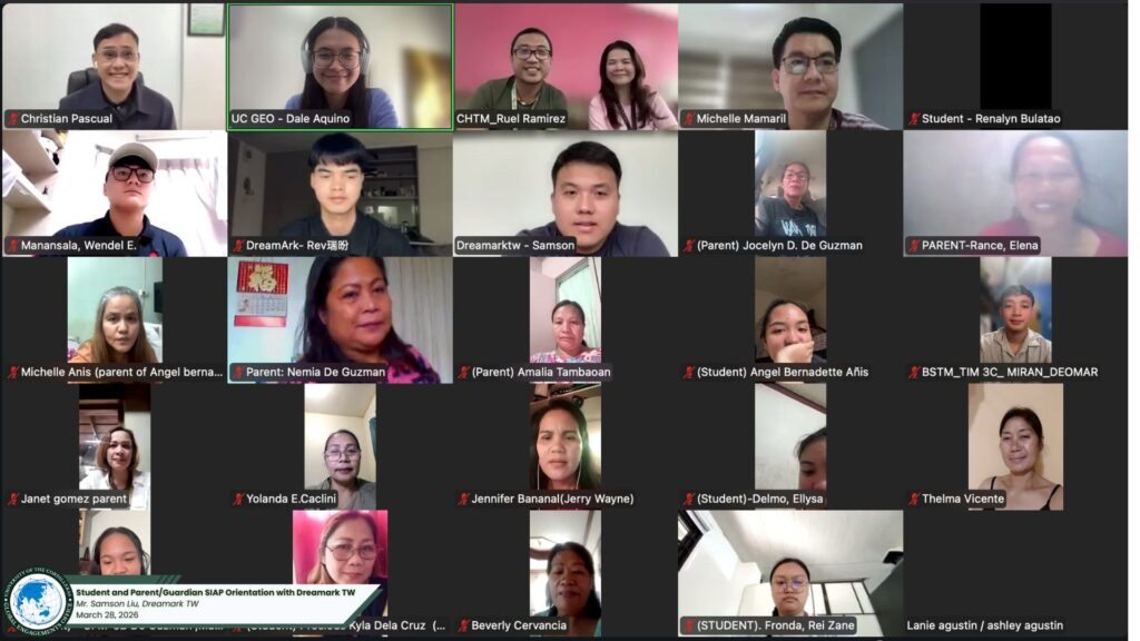 Ensuring a seamless transition from the classroom to the global stage, the University of the Cordilleras (UC) conducted a comprehensive follow-up orientation for the Student Internship Abroad Program (SIAP) last March 28, 2026. Organized by the College of Hospitality and Tourism Management (CHTM) in collaboration with the Global Engagements Office (GEO), the virtual session brought together 62 student interns and their guardians via Zoom.